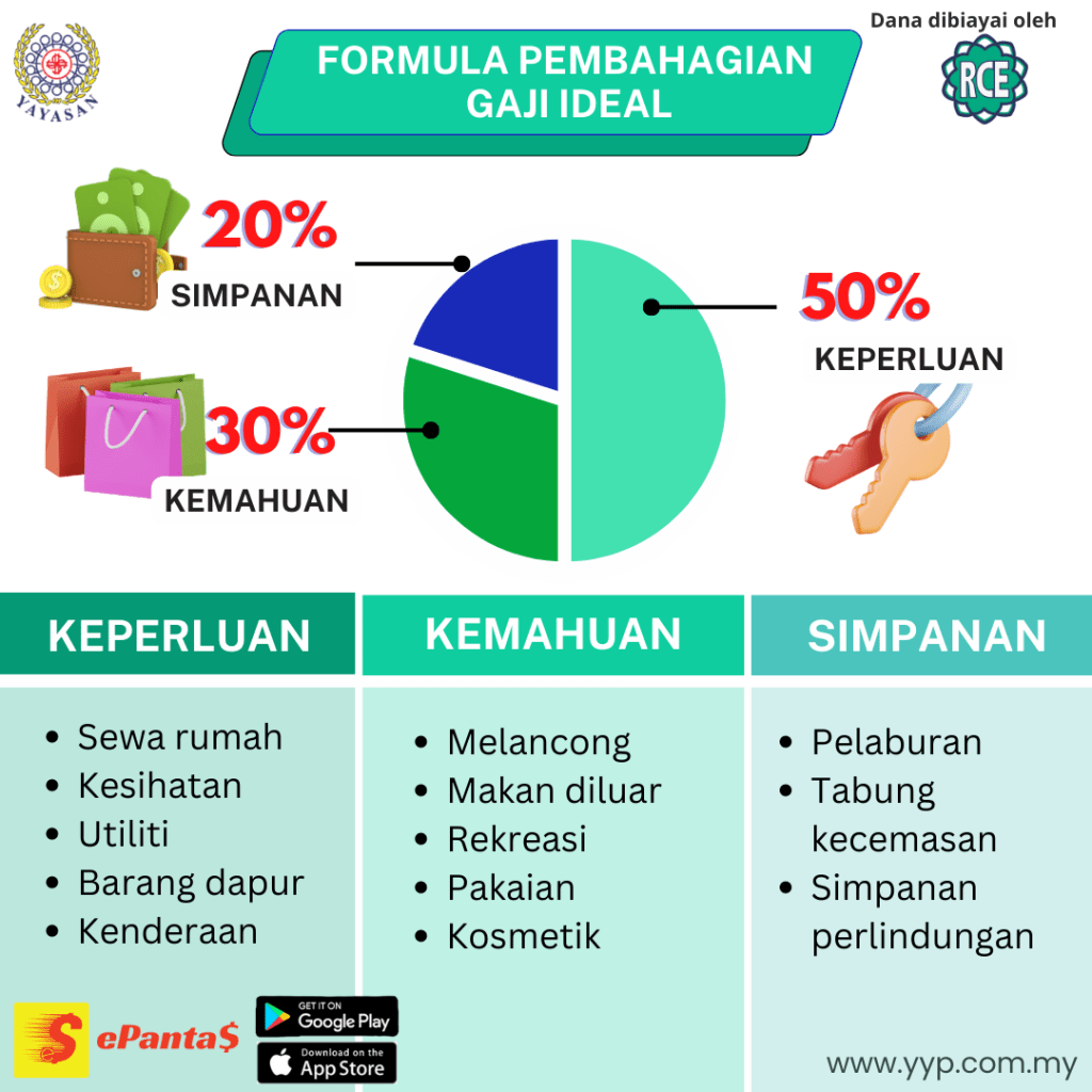 - Perkara penting untuk belanjawan anda ialah gaji bersih atau jumlah wang yang tinggal selepas anda menolak sumbangan Kumpulan Wang Simpanan Pekerja (KWSP), Social Security Organization (SOCSO), dan sebagainya yang wajib. Jika anda mempunyai lebihan wang, anda boleh menggunakannya untuk keinginan dan hiburan, namun pastikan anda menetapkan had dan pastikan sisakan sedikit wang yang ada untuk tabung simpanan.